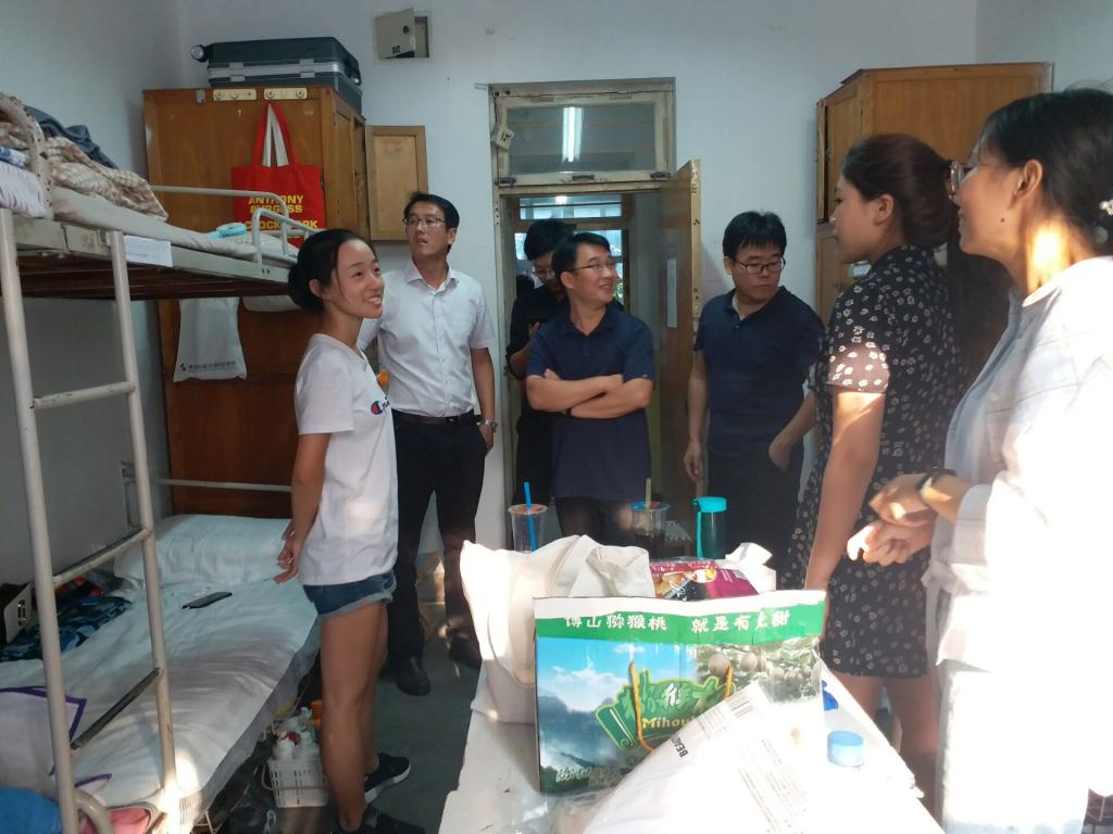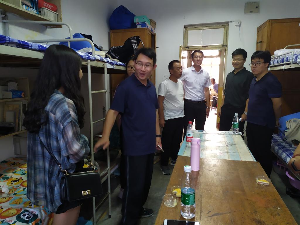建筑与城乡规划学院领导老师十分关心新生的生活状况,来到新生宿舍,首先检查了住宿环境及宿舍各种设备是否运转正常,确保新生同学们有一个温馨舒适的住宿环境,开始他们新的人生旅程。