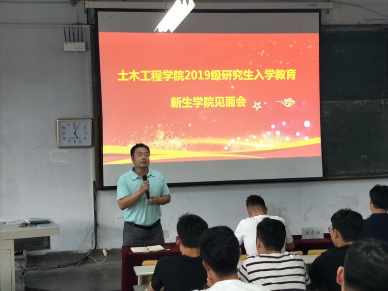 为使2019级研究生新生更好的熟悉学校生活,了解学院基本情况,9月4日下午,土木工程学院于一教200阶召开2019级研究生新生见面会,学院党总支书记曲成平、院长苗吉军、副院长张纪刚、张鹏、刘俊伟、分团委书记王中帅及全体辅导员出席本次大会, 大会由党总支副书记邵先锋主持。