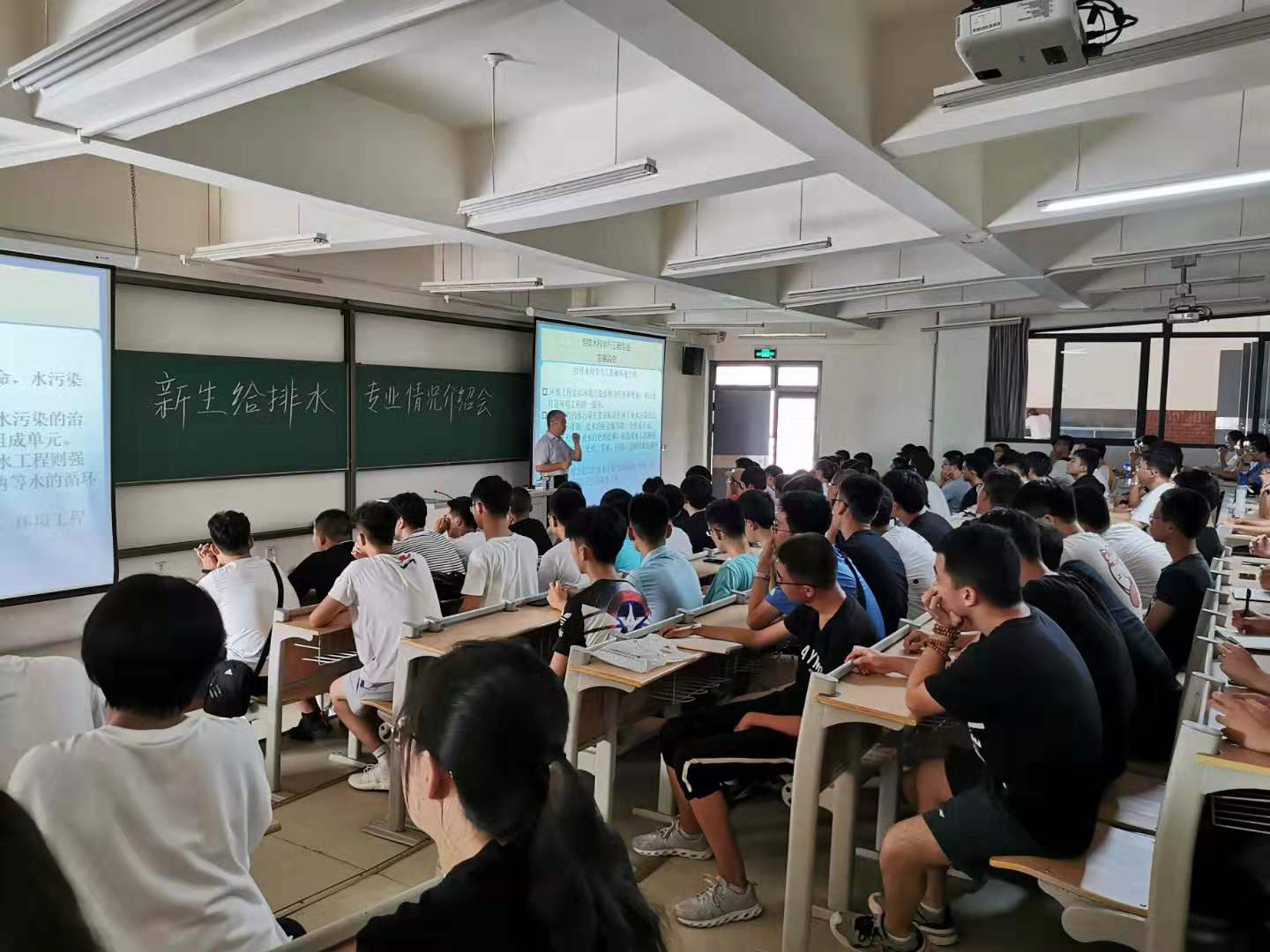 今年是环境与市政工程学院新生先期安排到新校区报到,为做好新生的大学第一课——专业介绍,环境与市政工程学院精心安排,认真组织,安排各专业的骨干教师集中于9月8日在嘉陵江路校区主教学楼举办了各专业2019级新生专业介绍会。学院副院长李金成、孙英杰、建环专业系主任王海英、刘龙和能动专业系主任周恩泽分别对各自专业进行了内容生动的介绍,全体2019级新生参加了介绍会。