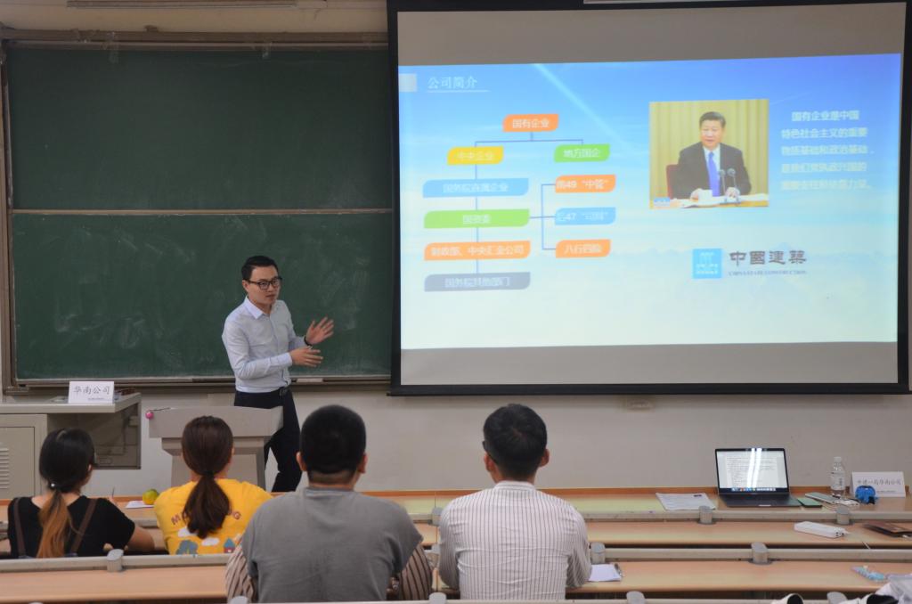 为增加应届毕业生求职渠道,促进我院学子更好地就业,9月11日晚,管理工程学院于主教学楼B132教室举办中建一局华南区域公司2020校园招聘宣讲会。中建一局华南区域公司招聘经理宋廉等公司相关负责人参加本次会议,宋廉担任本次会议主讲人。