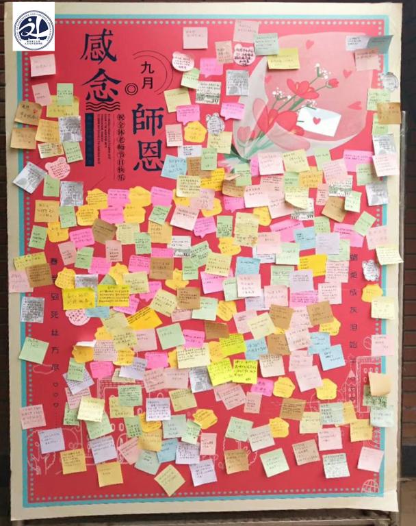 9月9日教师节前夜,我院全体同学在各班级心理委员的组织下,把对老师的感恩倾注于笔尖,小小的便签纸表达出对老师的拳拳祝福和感恩,外语专业的同学用本专业的语言知识回馈老师,书写内心感激之情。本次活动的便签纸将会在教学楼前的展板上张贴,节日虽过,师恩不忘。