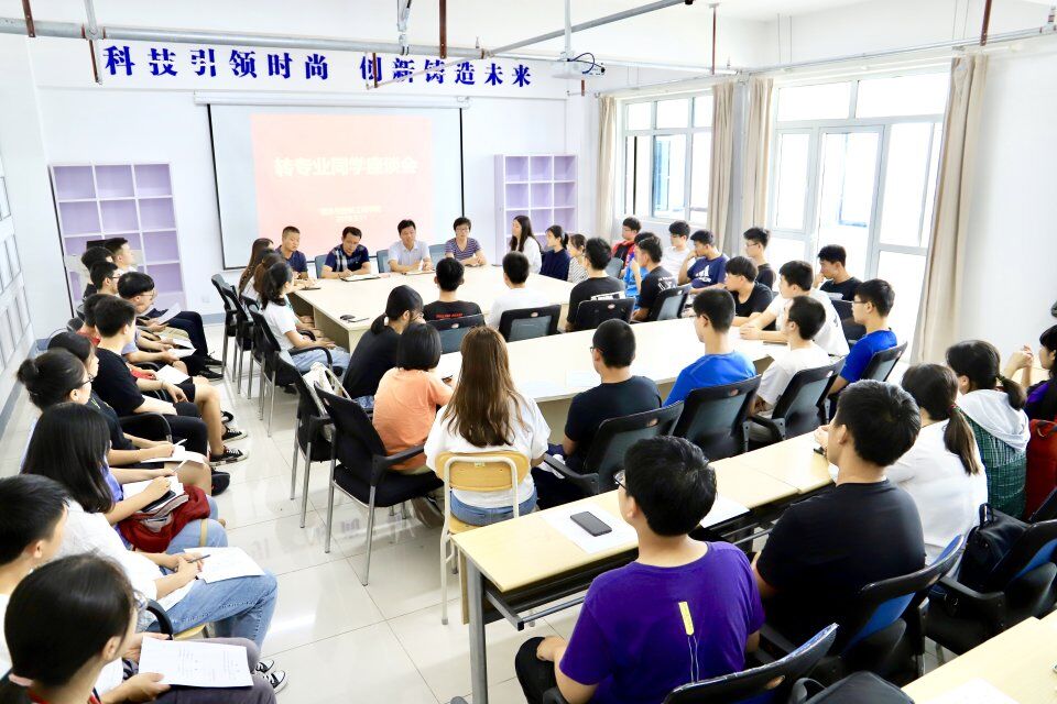 为使转专业学生尽快适应新环境,熟悉了解学院院情院史、教学管理、学生管理等相关规定,9月11日中午,信息与控制工程学院在嘉陵江路校区北区2号公寓楼“致新工场”召开2018级转专业学生座谈会,学院党总支书记董典同、党总支副书记曲良波、分团委书记(学工办主任)张英华、2018级全体辅导员以及60余名转专业学生参加本次座谈会,曲良波主持会议。