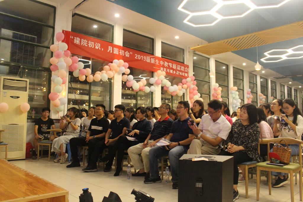 为庆祝中秋佳节的到来,促进2019级新生的相互交流,共度中秋,9月13日晚,建筑与城乡规划学院在北院思源餐厅组织了“建院初识·月圆初会”中秋联欢晚会。学校党委常委、副校长沈文青、团委书记高洁、学生处副处长郭兰成,建筑与城乡规划学院党总支书记肖学斌、院长许从宝、党总支副书记高江、学生工作办公室主任、分团委书记王鹏飞以及学院全体辅导员、新生班主任与2019级新生共度中秋佳节,展现出浓浓师生情意。