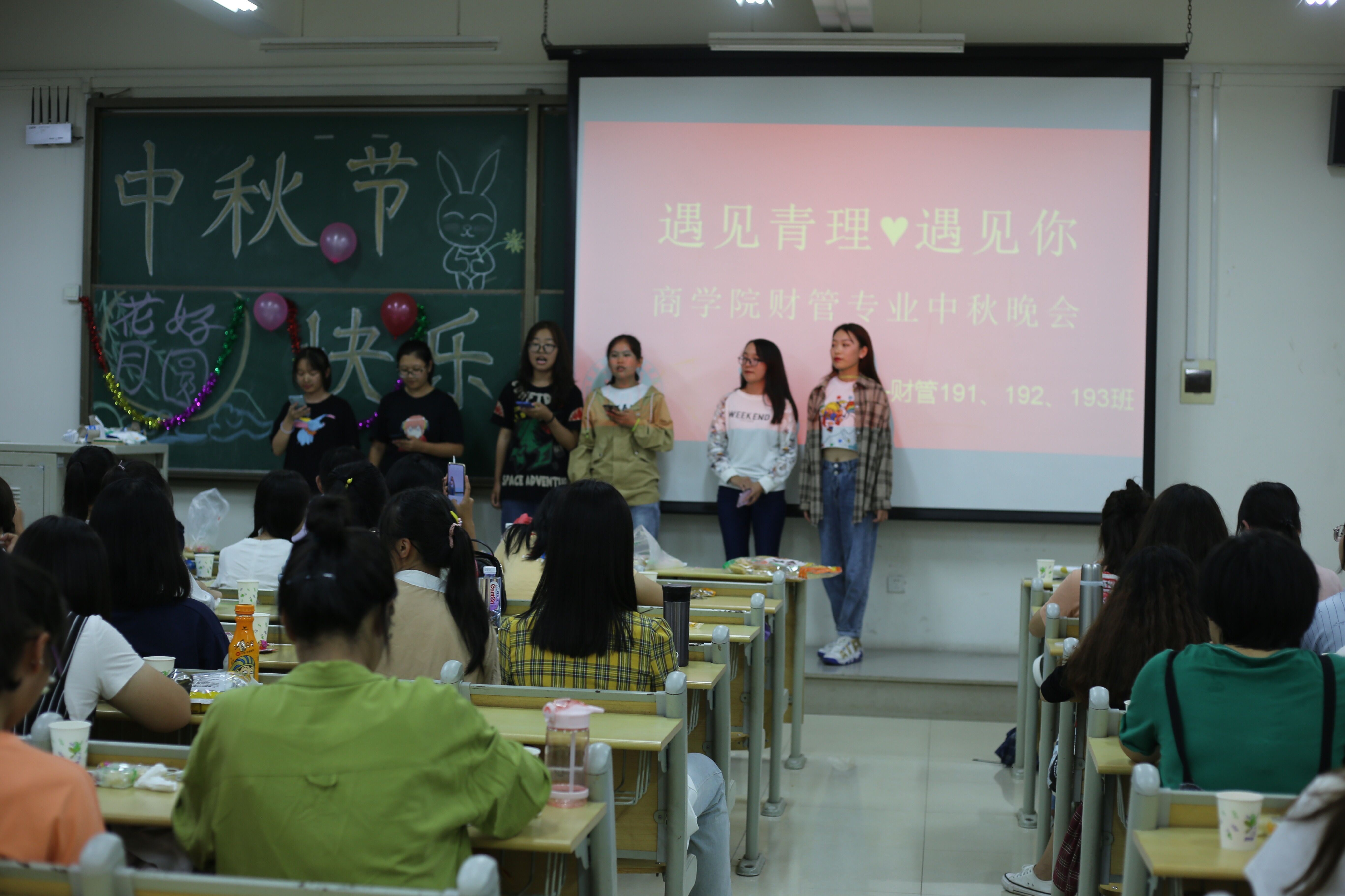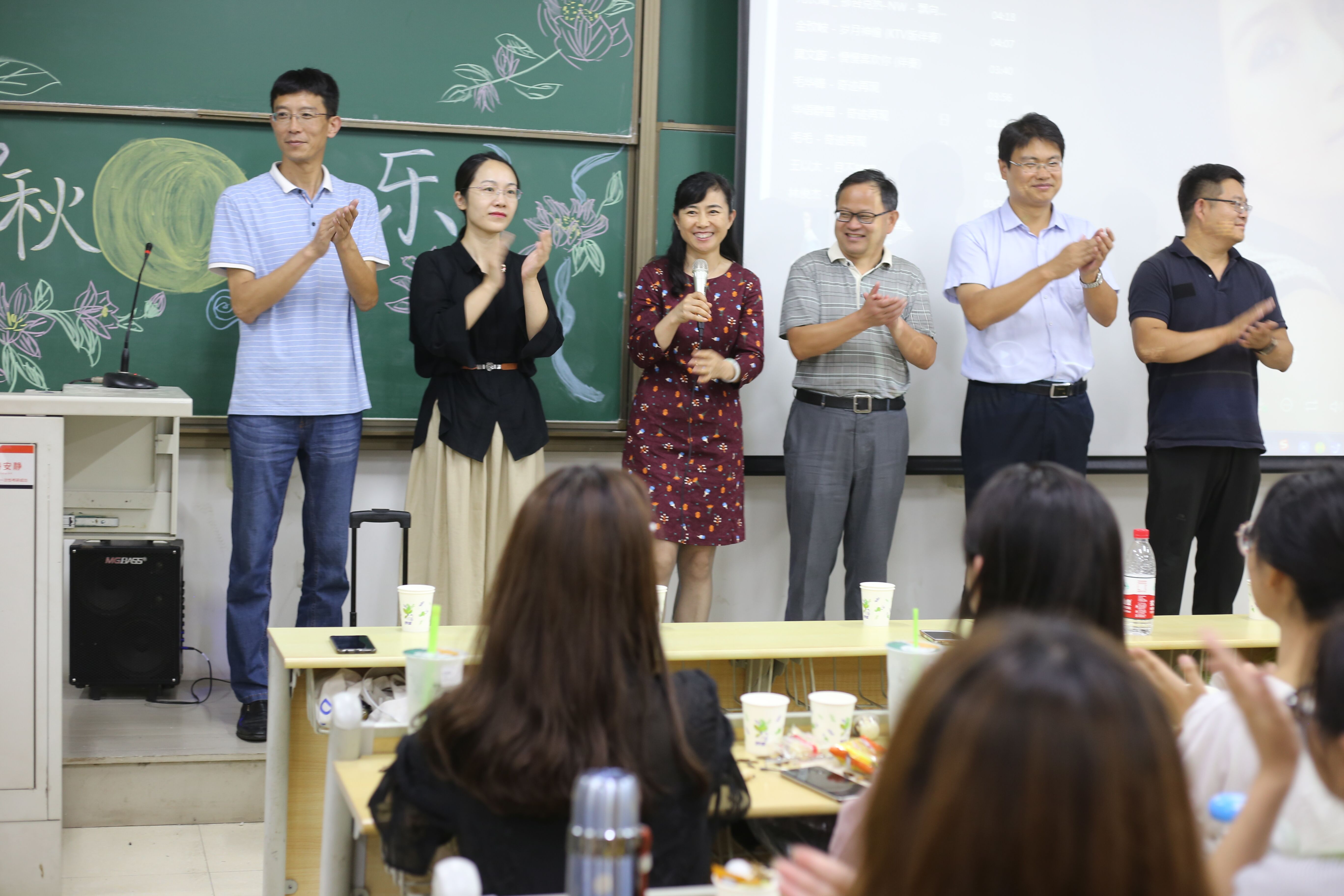 为庆祝中秋佳节,帮助新生尽快融入集体,丰富军训期间的大学生活。9月13日晚,商学院于主教学楼举办2019级新生中秋联欢晚会。校党委常委、副校长沈文青,学生处处长焦红良、团委书记高洁、学生处副处长鞠志强、保卫处副处长王国华、商学院党总支书记王粲、副院长胡保玲、党总支副书记董兰国、分团委书记兼学工办主任林丰艳、新生辅导员及各班班主任与2019级新生共度中秋佳节。
