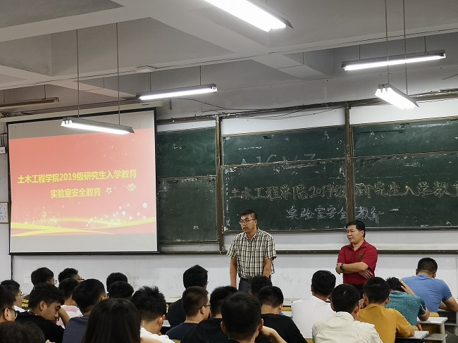 为提高学院2019级研究生实验室安全意识,创造良好的实验室安全环境,9月19日下午,土木工程学院于一教200阶举行2019级研究生实验室安全教育讲座,学院各实验室负责人、辅导员出席,副院长张纪刚主持活动。