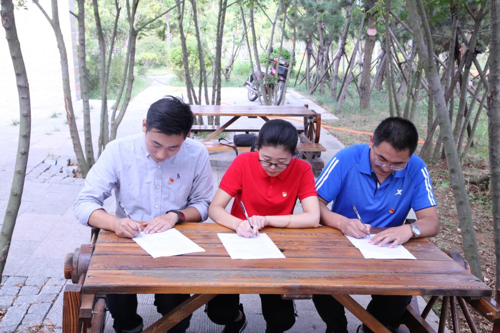 活动接近尾声,薛诚、薛晓娜、王玉喜代表三个支部签署了支部共建协议。依照协议,在后续的主题教育活动中,商学院学生第一支部学生党员围绕着主题教育活动的要求,将深入韶山路社区开展敬老、扶老及心理咨询等志愿服务;马克思主义学院教工一支部教师将发挥理论优势,向商学院学生一支部、韶山路社区党支部定期开展主题教育活动讲座;韶山路社区党委将为学生实践提供指导和帮助,三支部将以实际行动共迎中华人民共和国成立七十周年。