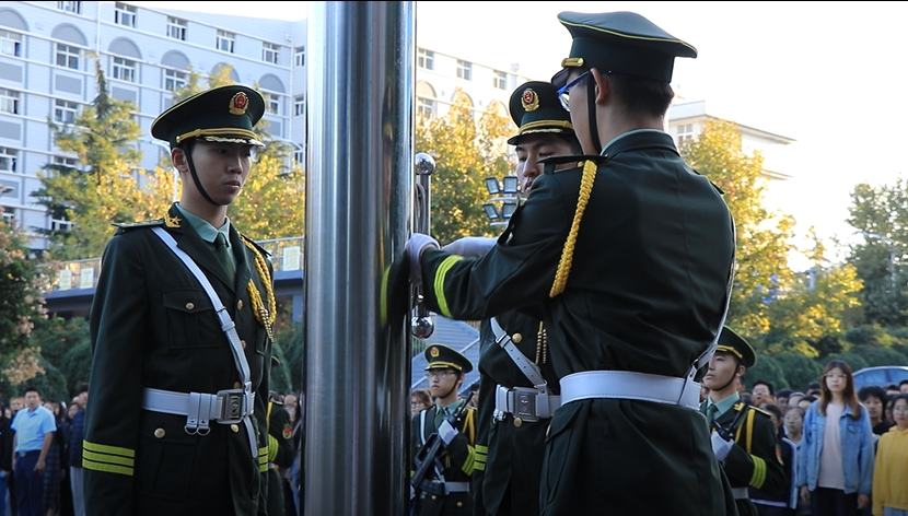 最后,升旗仪式在同学们热烈的掌声中结束,随着活动落下帷幕,19级的新同学们也将投入到新的学习生活中,相信他们一定能够用青春智慧与奋斗担当开创更加美好的明天。(撰稿: 刘本宽、王俊富;审核:徐佐君)