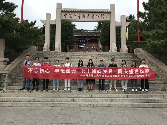 9月22日,土木工程学院研究生党支部部分党员在辅导员马蓉蓉和杜诗琳带领下前往威海市刘公岛党性教育基地,开展以“不忘初心、牢记使命,七十峥嵘岁月;同庆盛世华诞”为主题的党日活动,深入贯彻落实习近平新时代中国特色社会主义思想和党的十九大精神。马蓉蓉一行得到刘公岛管委会副主任毕崇军、处长王锡勇等同志的热情接待。