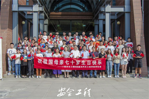 为庆祝中华人民共和国成立70周年,讴歌新中国成立70年来取得的伟大成就,弘扬新时代青年的爱国主义精神,激发广大师生的爱国热情,增强全体学生的民族自信心和自豪感,9月29日上午,2017级安全工程专业与院学生会联合举办“我为祖国献祝福”庆祝新中国成立70周年主题团日活动。活动在机械与汽车工程学院A区办公室前举办行。安全工程教研室主任撒占友,分管学生会辅导员王成,2017级安全工程班主任卢守青,专业老师谭清磊、王玉华及2017级安全专业辅导员王悦佳参加此次活动。