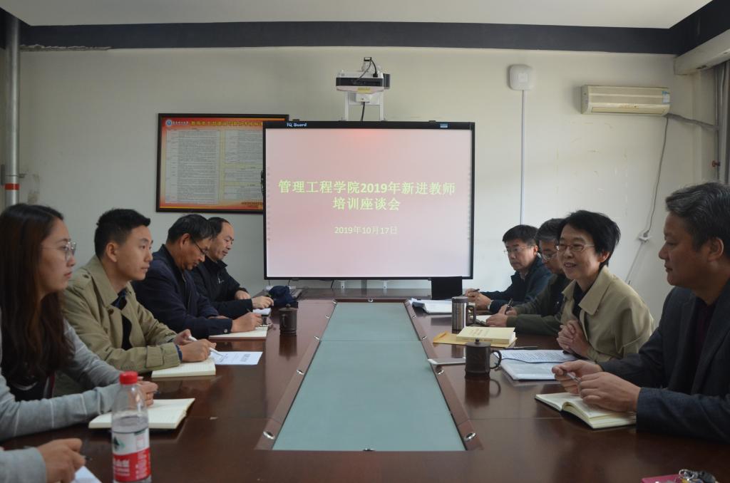 为了深入推进“不忘初心、牢记使命”主题教育,加强教师队伍建设,帮助青年教师更好更快地胜任教学以及科研工作,管理工程学院于10月17日在嘉陵江路校区主教学楼A212会议室召开2019年新进教师培训会议暨主题教育教师调研座谈会。党总支书记梁虹,院长荀志远,副院长申建红,陈为公及新教师导师姜东民、王志强出席本次会议。刘丁、李慧颖等5名新进教师参加了会议。会议由党总支书记梁虹主持。