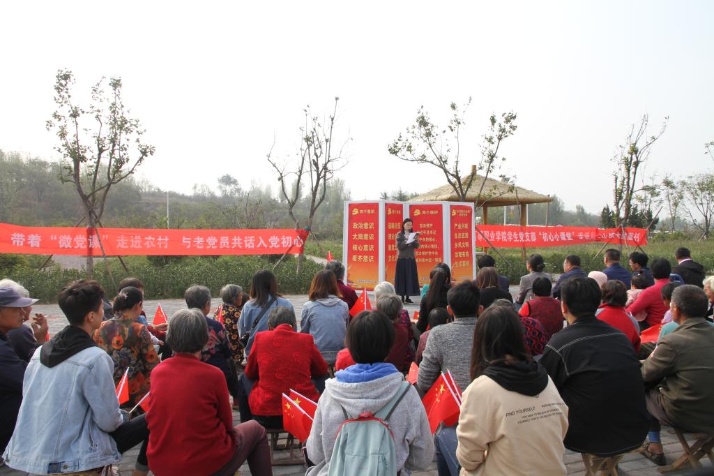 为深入开展“不忘初心、牢记使命”主题教育,积极用习近平新时代中国特色社会主义思想武装头脑、指导实践,高等职业学院学生党支部按照学院“不忘初心、牢记使命”主题教育的总体安排,积极深入社区、走进农村、面向学校开展“初心小课堂”理论宣讲活动。20191018日上午学生党支部全体成员来到宣讲的第一站西海岸新区宝山镇大陡崖村,和村里的老党员共话入党初心。