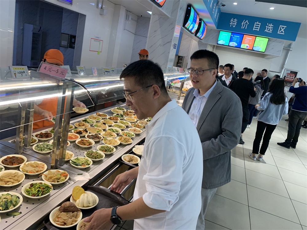 校友们在食堂排队打饭
