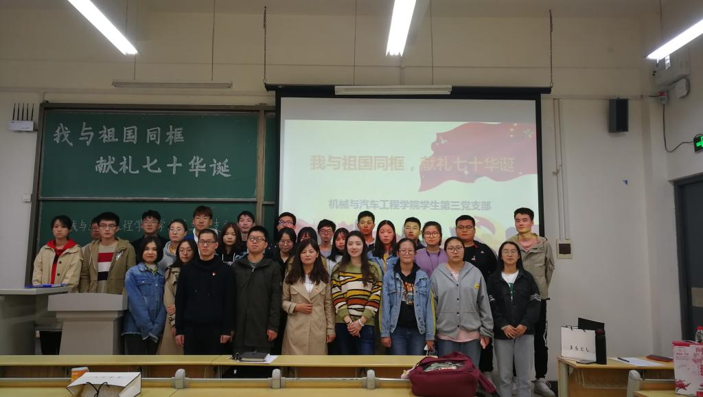 为庆祝中华人民共和国成立70周年,深入开展“不忘初心、牢记使命”主题教育活动,让更多的青年学生表达自己的爱国之心,近日,机械与汽车工程学院学生第三党支部开展了以“我与国旗同框,献礼七十华诞”为主题的党日活动,学院300多名党员、入党积极分子参加了此次活动,与国旗同框合影,说出对祖国的美好祝愿。