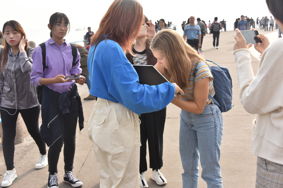 在拥抱志愿者活动招募期间,同学们踊跃报名参加。简单培训过后,在以“杜绝纠缠打扰无礼嬉闹;保持绅士温柔真诚用心”为行动原则下,志愿者于下午两点三十分在五四广场集合,以小组为单位开始进行拥抱陌生人的活动。活动中,同学们抛却羞涩,主动向陌生人征询是否可以拥抱,在得到对方同意后进行热情拥抱并送上温暖的微笑,通过这种方式传递关怀。活动过程中志愿者还主动与语言不通的外国友人交流,展现出志愿者的热情与活泼,随后向陌生人进行采访,以填写问卷的形式对本次活动进行了基本的调研总结。本次拥抱志愿者们也表示“拥抱”不是目的,而是希望以这种温暖的形式传达“拒绝冷漠”的精神,通过拥抱促进大家对人情冷暖的关注,同时提醒人们拒绝冷漠,热爱生活。真正做到温暖他人,温暖社会,温暖自己。