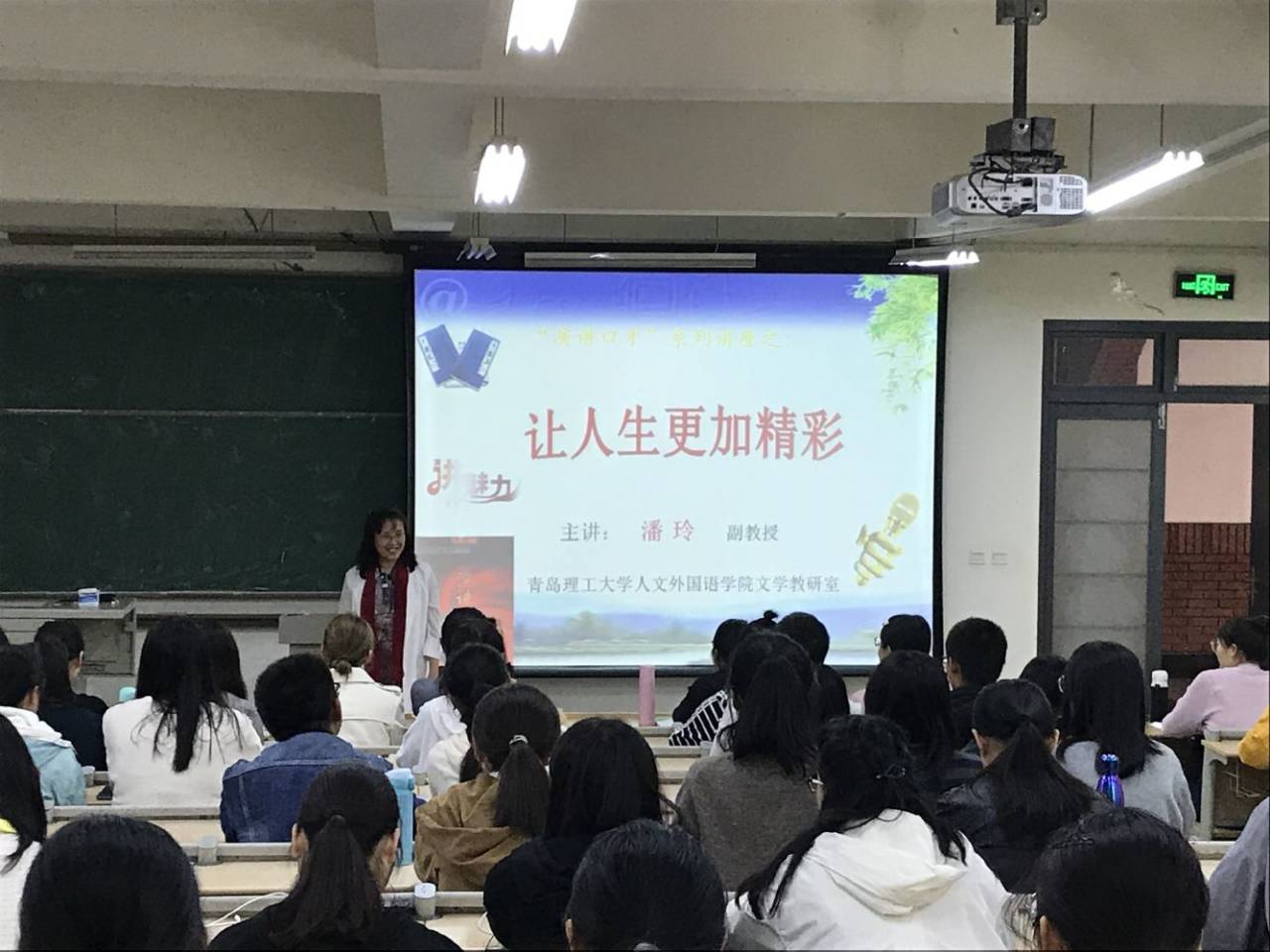 潘玲是汉语言文学专业副教授,山东省演讲与口才学会常务理事,青岛市高校演讲委员会主任。“榜样的力量是无穷的。”潘玲通过介绍自身经验,并列举大量实例的方法,向在场的师生详细说明了在现代社会中提高自身口才的重要性。讲座理论结合实际,有理有据,透彻清晰。(撰稿:单勃奥;审核:郭印)