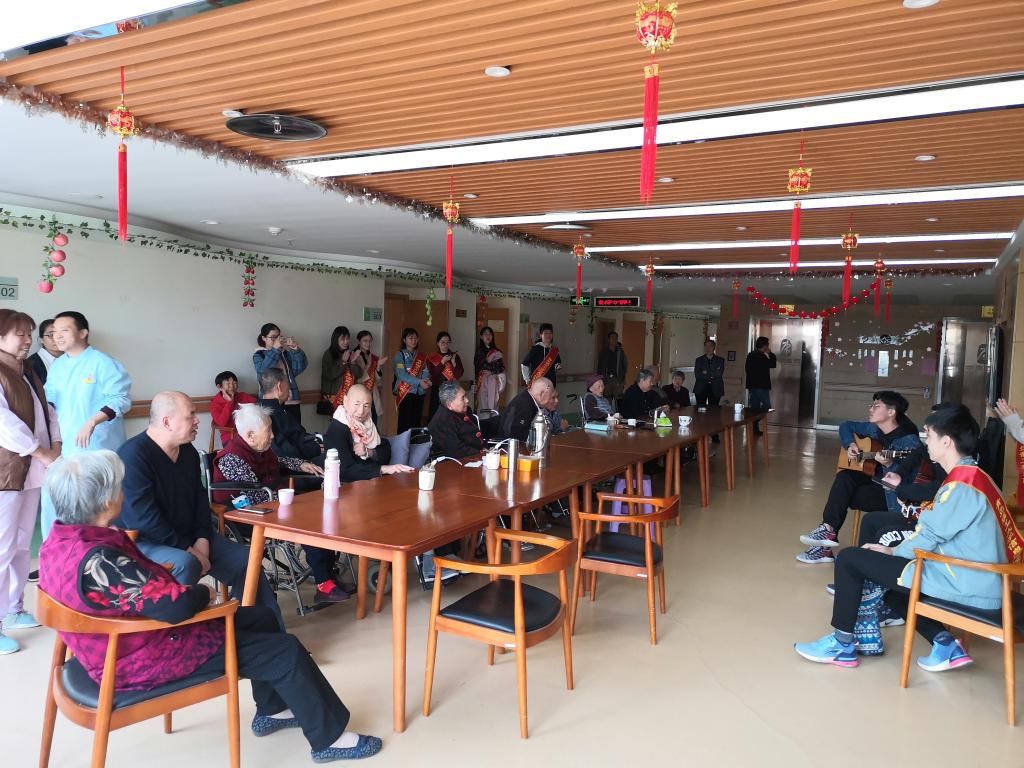 随后,在护理院负责人的安排下,党员们先陪老人们聊天、话家常,听老人们讲他们日常饮食起居及身体健康状况,聊天过程中同学们感受到了跟自己家的爷爷奶奶话家常的那般温暖。乐队同学带去了精心排练的文艺节目,在优美的音乐和贴心的聊天中,支部党员和积极分子陪老人度过了一个愉快的上午。