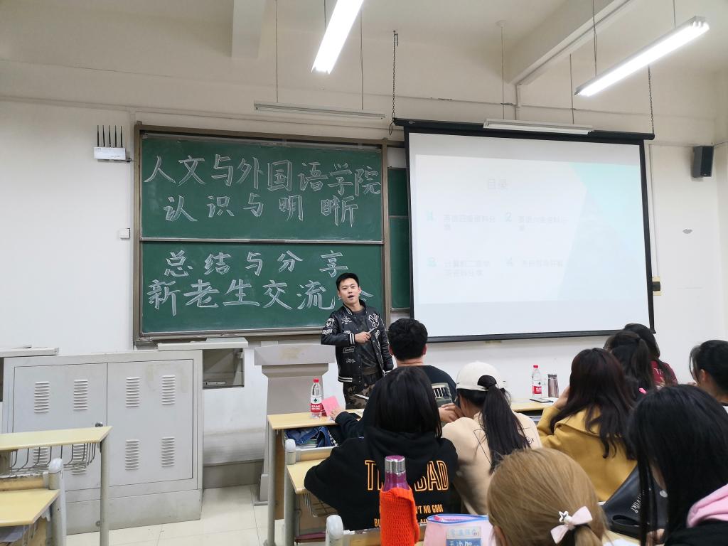 为了让新生更好的适应大学生活,掌握学习规律和方法,明确大学四年的目标和规划。10月27日,人文与外国语学院学创部在b124、b126、b131教室举办“认识与明晰”新老生交流会。莅临本次活动的嘉宾有张菡容、赵国丽、张钧等九位在学术、社会实践、学生工作方面有建树的优秀学生代表。