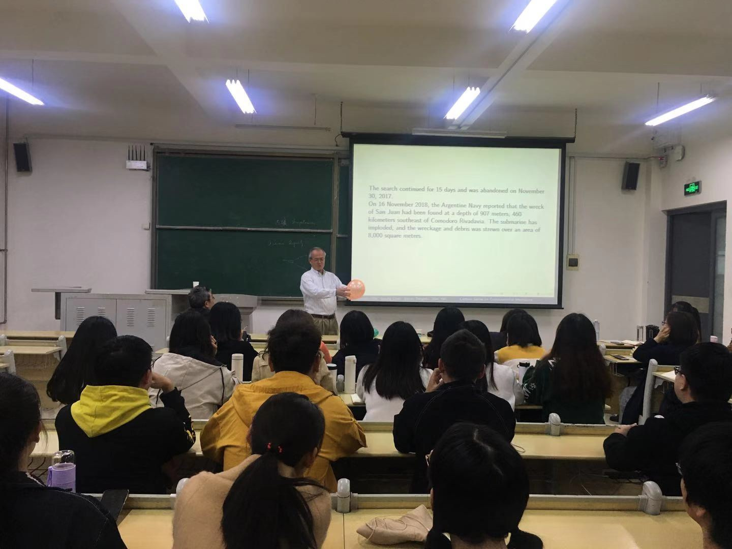 为了加强学术交流,营造浓厚的学术氛围,激发创新活力,促进知识和文化传播,展现学术风采,增进相互了解和欣赏,10月28日下午,理学院特邀美国Texas A&M Univerity陈巩教授作了题为《Implosion of the Argentinian Submarine ARA San Juan S-42 Undersea: Study and Simulation》的学术报告,报告会在嘉陵江路校区主教学楼B226教室举行,理学院50多名师生聆听了报告会。
