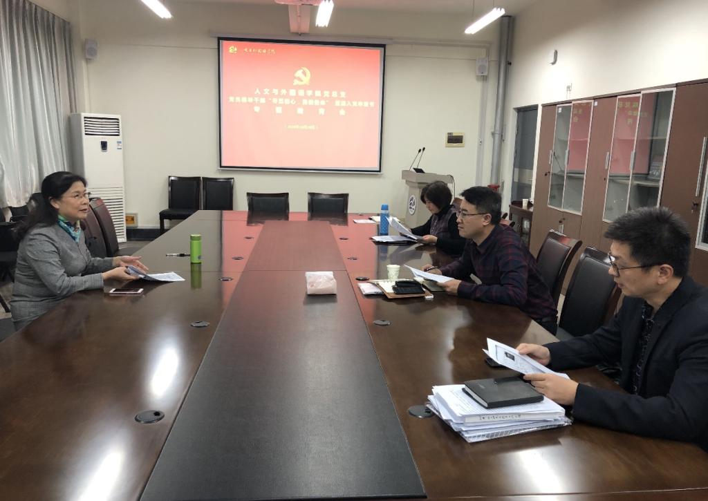 10月28日下午,人文与外国语学院党总支在嘉陵江路校区主教学楼A410室开展“寻觅初心,勇担使命——重读入党申请书”专题教育会。党总支书记王新、副书记王振,副院长郭印、莫玉梅一同参与了本次专题教育。