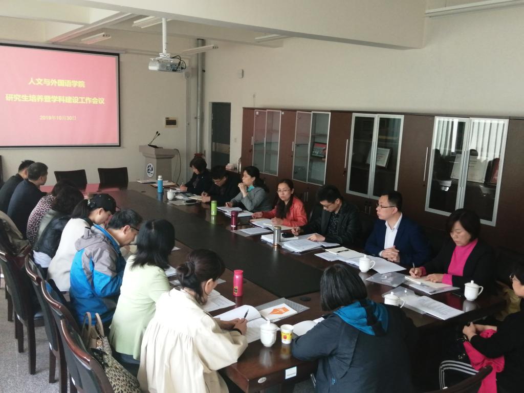 结合“不忘初心、牢记使命”主题教育,10月30日下午,人文与外国语学院在A410会议室举行研究生培养暨学科建设工作会议。学院党政领导班子成员、全体研究生导师、教科研工作人员参加了此次会议。会议由院长巩湘红主持。