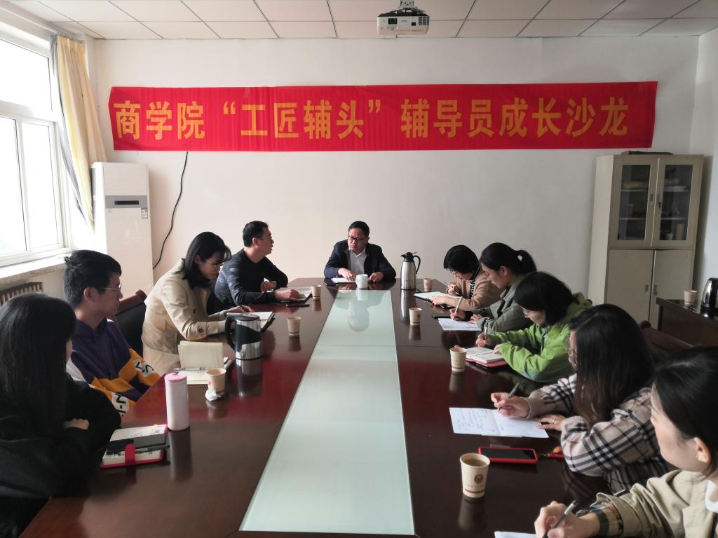11月2日上午,商学院在长江路校区1教403举办第十二期“工匠辅头”辅导员成长沙龙。商学院党总支书记王粲、副书记董兰国以及全体辅导员参加学习交流。