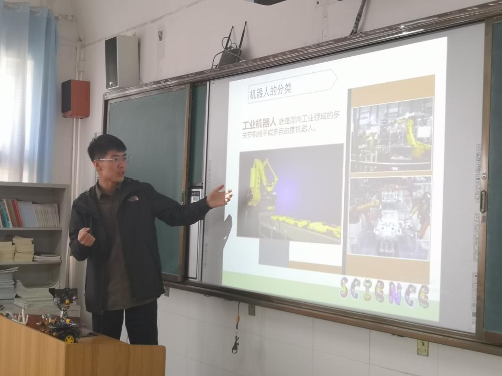 在班主任隋老师的陪同下,支部党员以生动活泼的形式为小学生们带去了以“机器人-人类的帮手”为主题的精彩科普课。在课堂上,党员们熟练运用多媒体手段,穿插图片动画讲解,同时积极提问,引导小朋友正确思考,课程内容充实,以大学生的视野和小学生的奇思妙想进行了一次思想的碰撞。随后,党员们展示了自己制作的灭火机器人与寻迹避障机器人,引起了小朋友强烈的好奇心,将课堂氛围推向了高潮。活动中小学生踊跃提问,与大学生哥哥们积极互动。