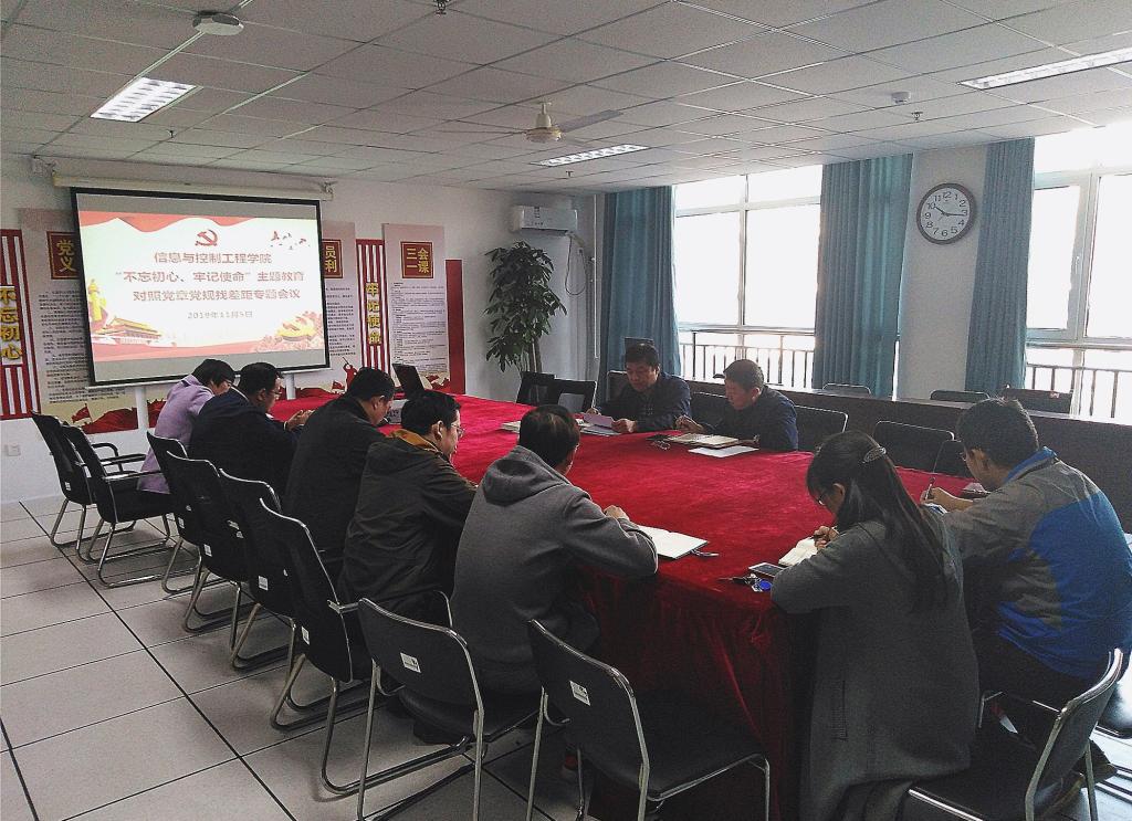 根据学校“不忘初心、牢记使命”主题教育工作安排,11月5日上午,信息与控制工程学院在信控大楼206党建活动室召开对照党章党规找差距专题会议。学院理论中心组全体成员参加会议,会议由党总支书记董典同主持。