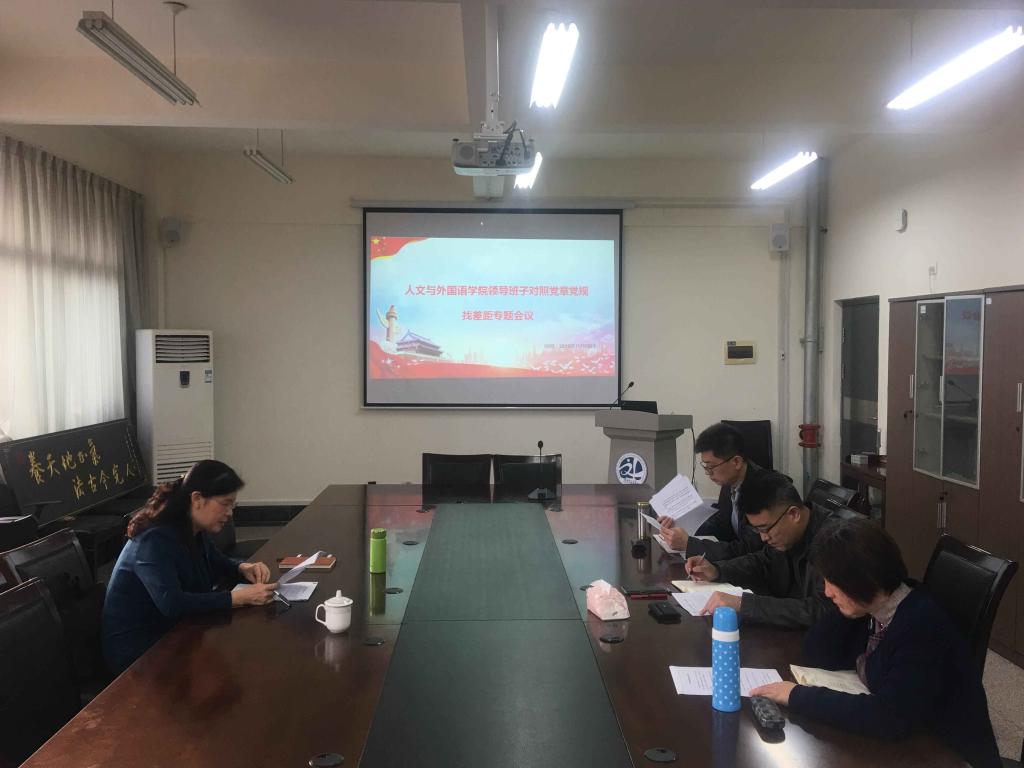 11月6日,按照学校“不忘初心、牢记使命”主题教育部署安排,人文与外国语学院领导班子召开了对照党章党规找差距专题会议。党总支书记王新主持会议并带头作对照检视,学院领导班子成员参加了会议。