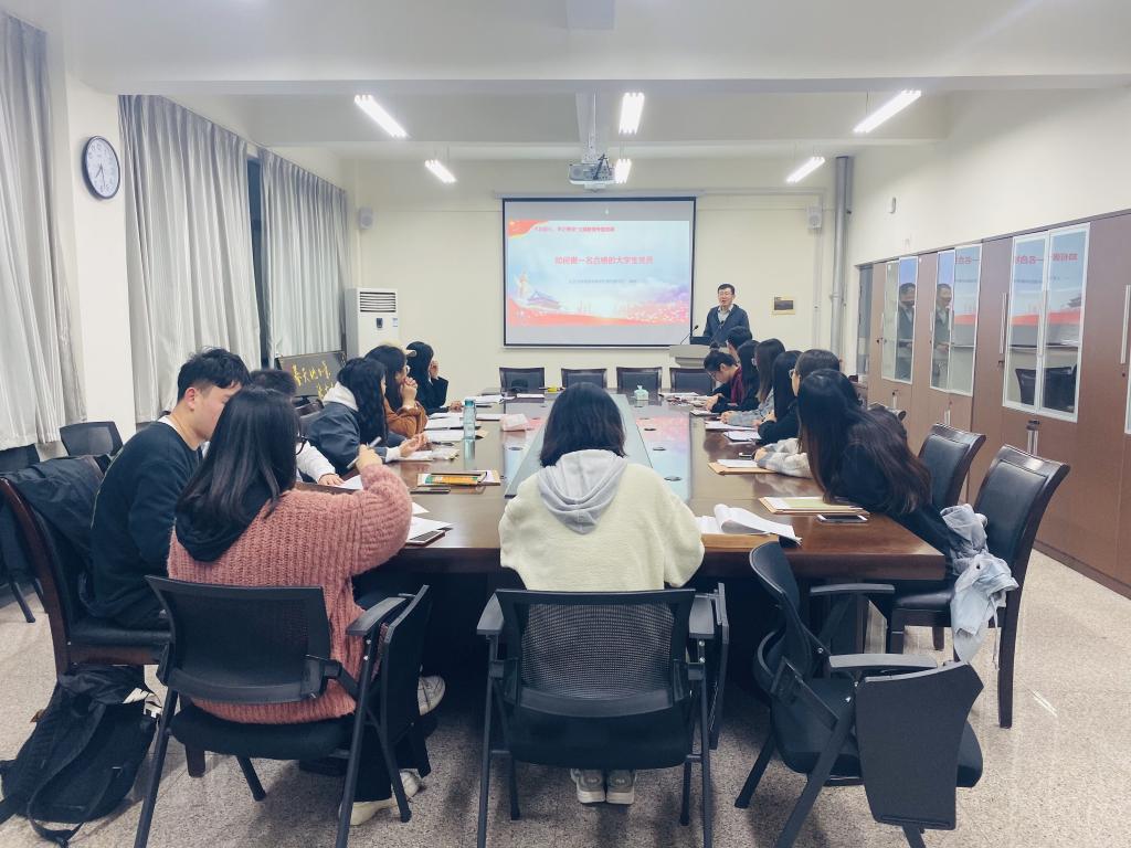 为进一步提高学生党员思想认识和纪律、规矩意识,成为一名合格的共产党员,按照校党委组织部的要求,11月7日晚,人文与外国语学院学生党支部开展“不忘初心、牢记使命”主题教育专题党课,学生党支部书记陈刚为学生党员做了题为“如何做一名合格的大学生党员”专题党课。