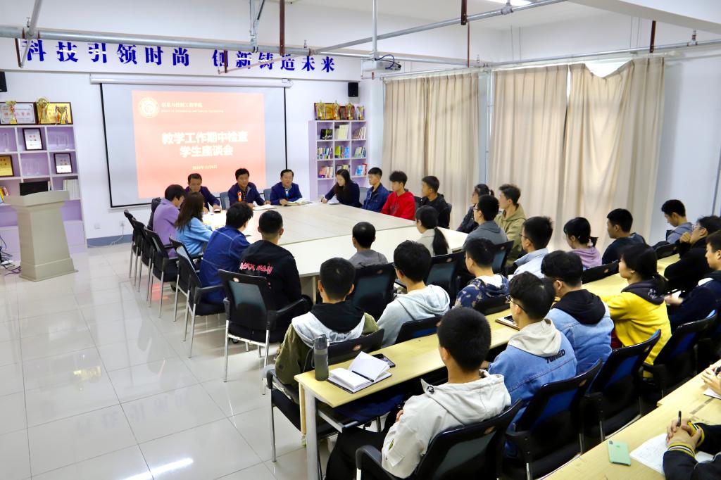 为了提高教育教学质量,根据学校及学院进行期中教学工作检查的要求,11月6日下午,信息与控制工程学院在嘉陵江路校区北区二公寓“致新工场”召开教学工作学生座谈会,学院党总支书记董典同、党总支副书记曲良波、副院长宋传旺、学工办主任兼分团委书记张英华、教科研办主任熊晓芸、辅导员贾戈及各年级、各专业的学生代表30余人参加座谈会,会议由宋传旺主持。