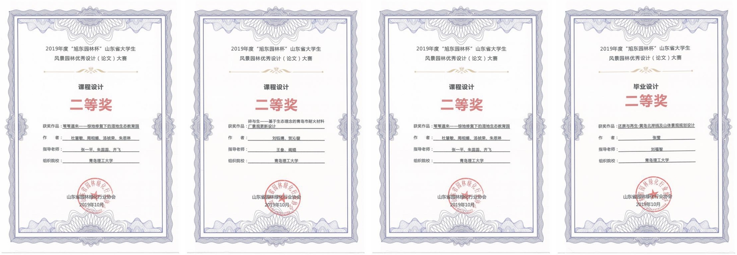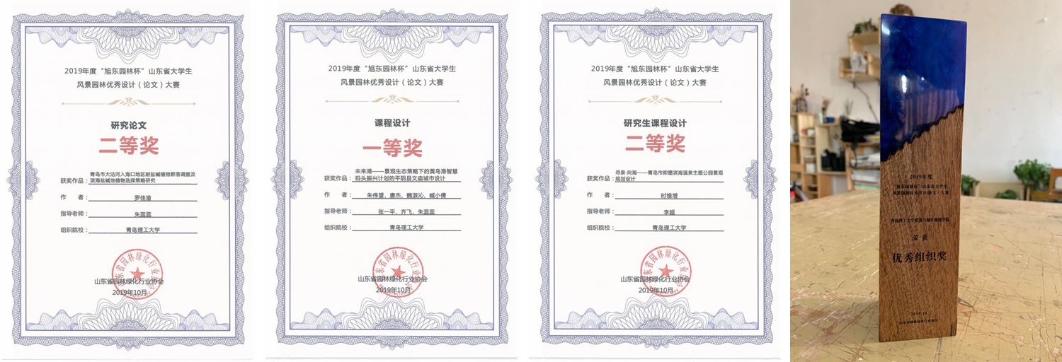 11月9日下午,张一平、沈博嵩出席了2019年度“旭东园林杯”山东省大学生风景园林优秀设计(论文)大赛的颁奖仪式,在此次比赛中,我院风景园林专业学生荣获一等奖1项,二等奖7项(含研究生获奖1项),三等奖8项的好成绩,建筑与城乡规划学院荣获优秀组织奖。