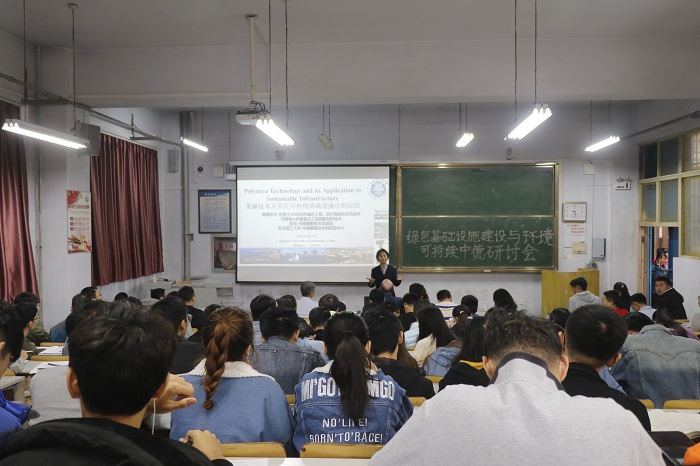 吕平从北京奥运工程,京沪高铁和青岛胶州湾跨海大桥等重点工程的新材料技术讲起,为大家带来《聚脲技术及其在可持续基础设施中的应用》的报告。她以聚脲技术的起源、发展、运用为主线,介绍了聚脲这种新材料的分子结构与防水,防老化,防腐蚀等特点。并着重介绍了聚脲技术在海洋腐蚀防护,化工防腐,地下工程等领域的广泛应用,描绘了其在绿色基础设施建设与环境可持续的应用的光辉前景。