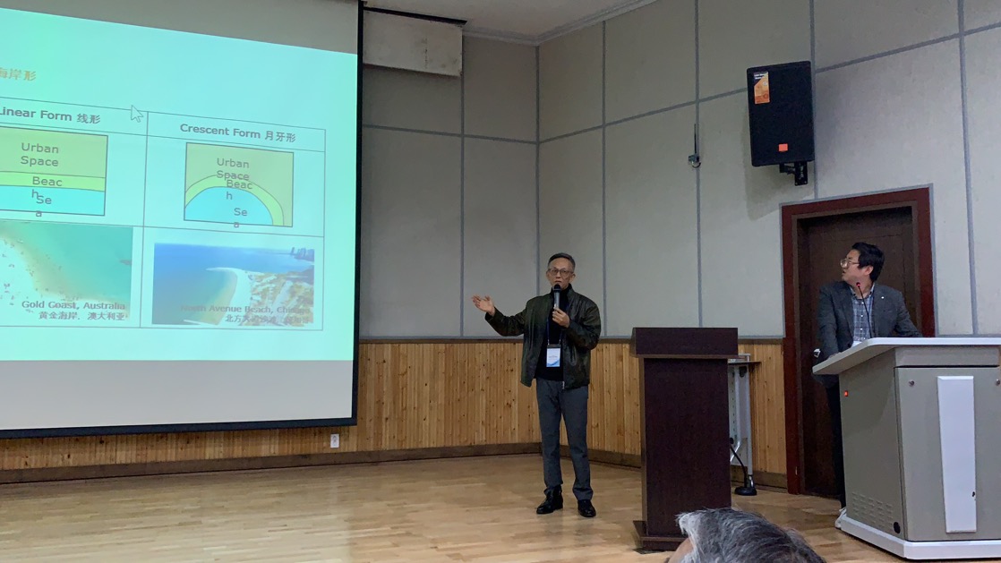 郝赤彪教授带来主题为《城市海水浴场活力性研究》的演讲。他主要从滨海城市活力的概念及种类、空间划分、空间元素及形成条件这几个方面进行了学术探讨,在演讲过程中对就青岛的第一海水浴场、石老人浴场、金沙滩及崂山景区等青岛典型滨海开放空间的活力现状进行了分析,简述了影响滨海城市活力的因素是复杂多样的,通过对于青岛历史发展沿革的探究,以及能够激活青岛城市活力的海滩和景区旅游资源,分析其现状活力空间发展的优缺点以及地域分布特征,以青岛滨海的活力研究为依托,对比了墨西哥坎昆海滩、印度尼西亚的巴厘岛、法国尼斯海滩、三亚亚龙湾等国内外知名滨海活力空间的发展现状,并结合釜山滨海城市及人居特点,以生动形象的例子点明了滨海空间建设对激发城市活力的重要性,提出了激活滨海城市活力的策略。其生动活泼的演讲形式也同时激发了会议现场师生的思维活力,与现场参会人员产生了良好的互动效果。