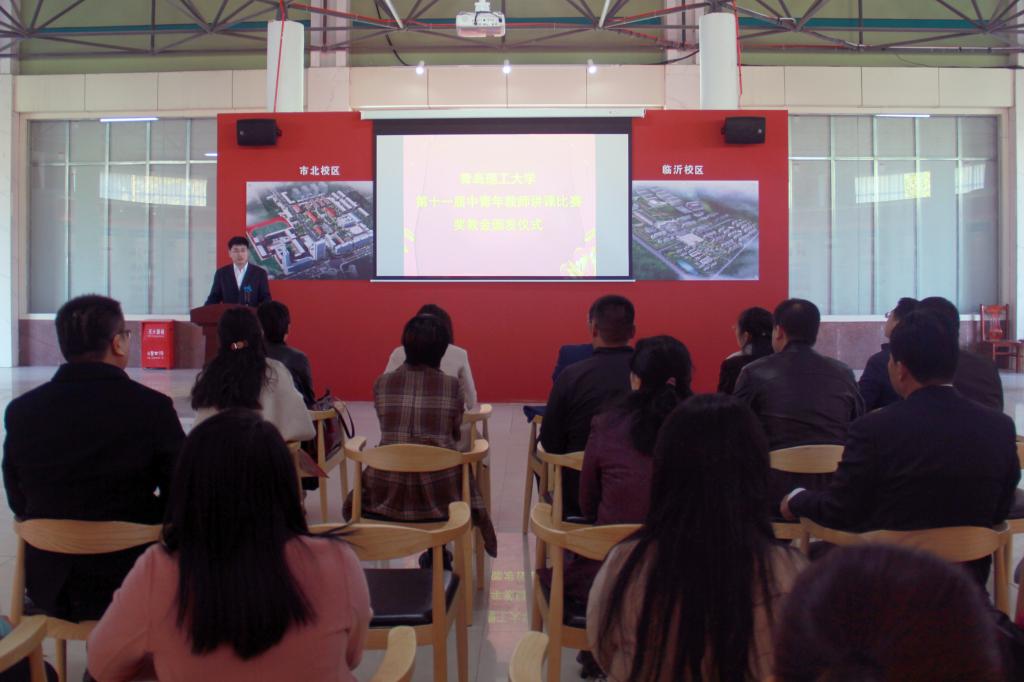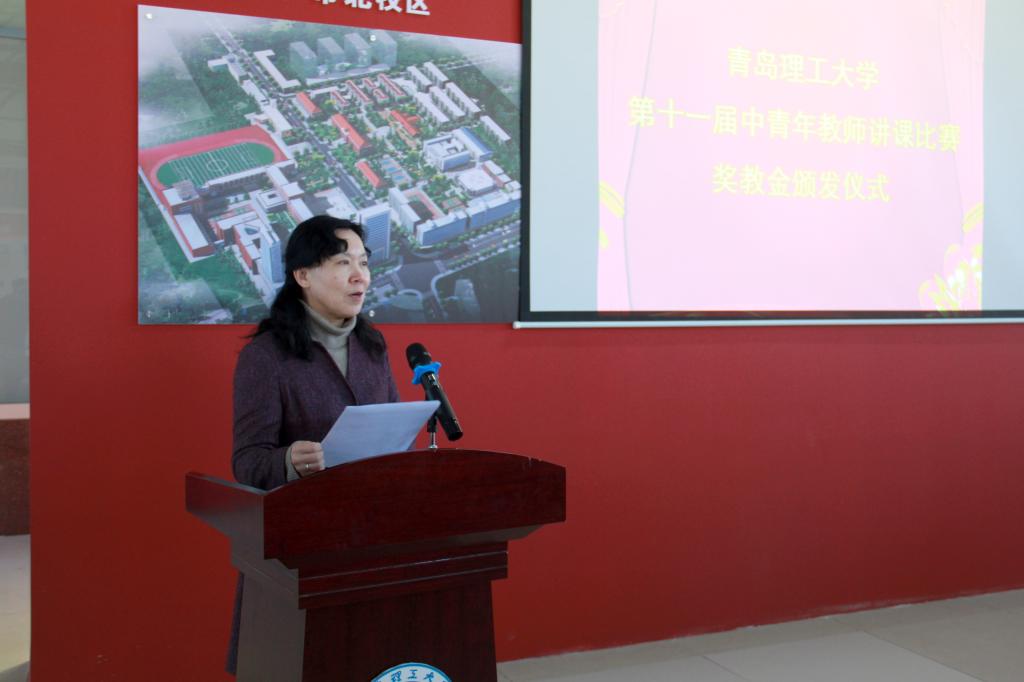 仪式上,范学工宣读《365完美体育第十一届中青年教师教学竞赛临沂校区获奖选手名单》,全恩伟为10名获奖教师颁发奖金人民币5.2万元,学校讲课比赛一等奖、省第六届高校教师教学比赛二等奖获得者王兴蕊代表获奖教师发言。