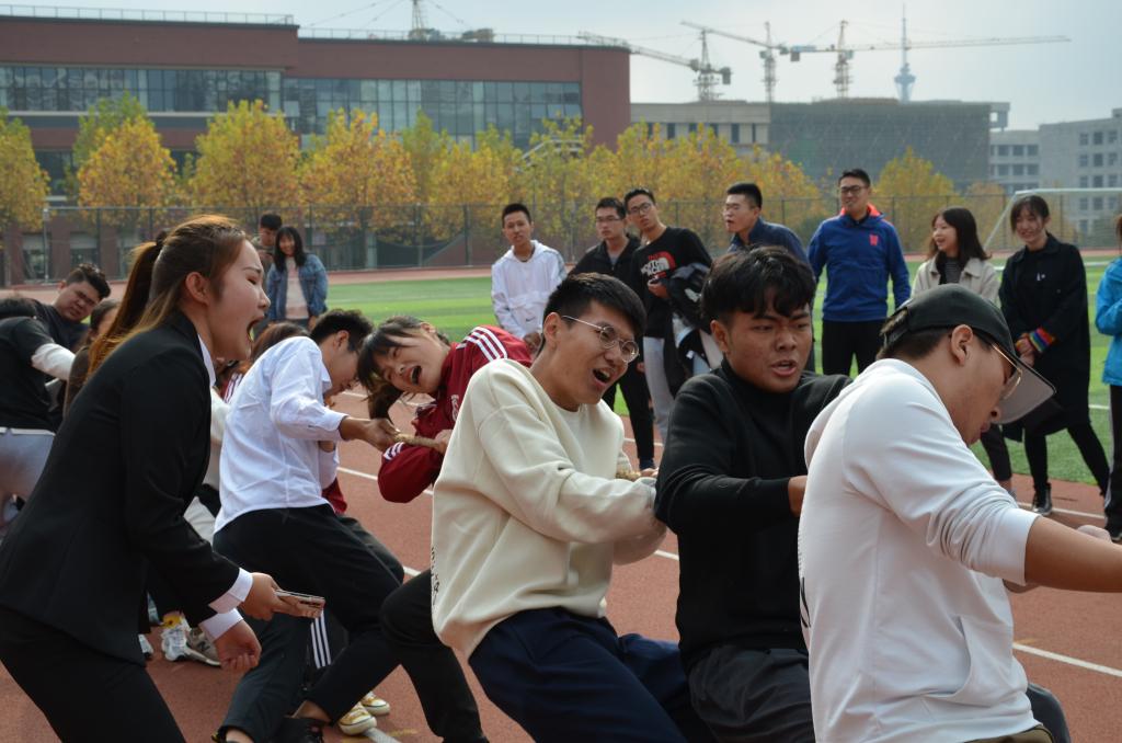 为发扬团队精神,增强班级凝聚力,丰富同学们课余生活,让同学们走下网络、走出宿舍、走向操场,11月16日中午,商学院于嘉陵江路校区东操场举办体育文化节系列活动之新生拔河比赛。商学院18级辅导员孙楚、19级辅导员李靖、学生会主席尹盖盖出席本次比赛。