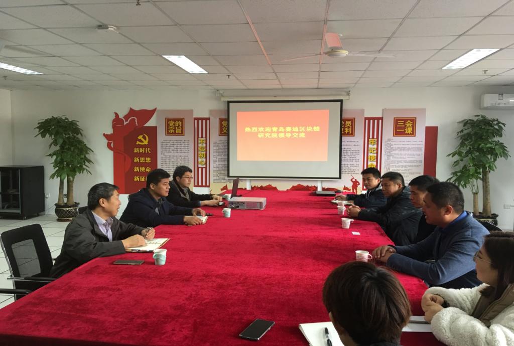 党总支书记董典同谈到,区块链技术是当今发展信用社会的重要实现技术,为学习贯彻习近平总书记在2019年10月24日中共中央政治局就区块链技术发展现状和趋势进行第十八次集体学习时的重要讲话精神,学院领导前期已经通过举办讲座进行了相关的学习。此次,赛迪(青岛)区块链研究院相关领导到我学院就人才培养基地等事宜进行交流,对区块链人才的培养具有重要意义,希望双方紧密结合当前区块链发展需要,尽快推进该项目合作。