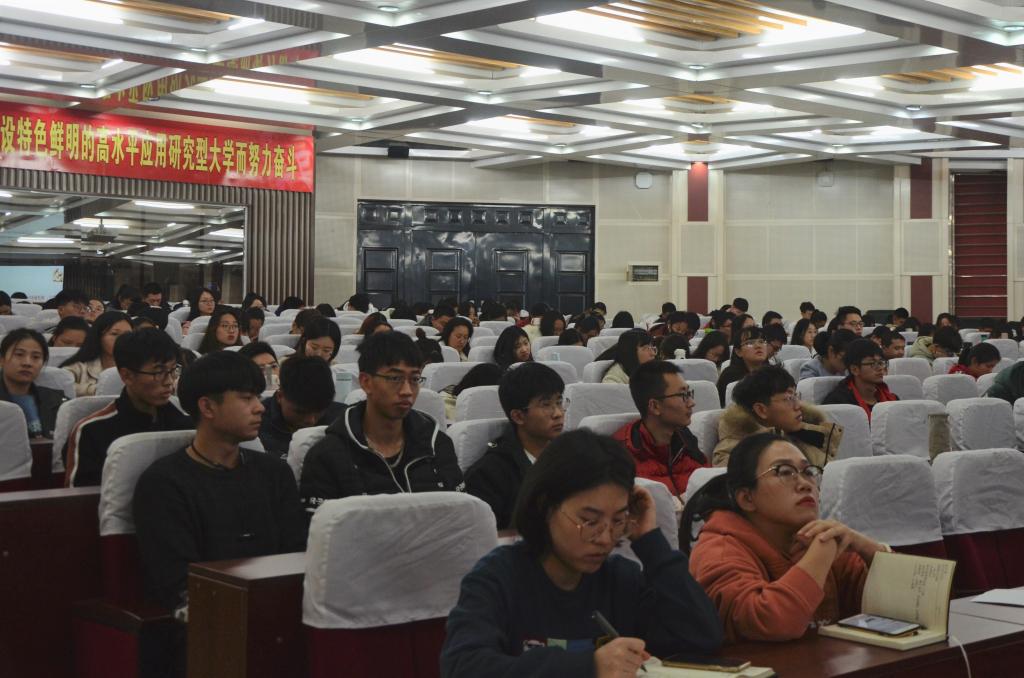 会议伊始,华章琳首先介绍了中国共产党的组织机构以及中央政治局会议的召开机制,帮助师生们对全会召开背景有了基本认识。随后,华章琳以“开辟‘中国之治’新境界——准确理解十九届四中全会精神内涵”为题展开对全会精神意义的全方位解读。他从十九届四中全会召开的重大意义、中国特色社会主义制度的显著优势、十四中全会明确未来发展目标和重大战略任务等四个方面详细介绍了十九届四中全会会议内容,并分享了个人的心得体会。他指出,党的十九届四中全会是坚定中国特色社会主义制度、完善“中国之治”的行动指南,是落实党的十九大战略安排的逻辑展开,是推进新时代改革开放的根本要求,更是实现中华民族伟大复兴中国梦的重要保证。在面临重大机遇挑战期和百年未有之大变局的今天,全会的召开有着极其重要的现实意义。讲解过程中,通过对国际焦点和热点的剖析阐述中国特色社会主义制度的优越性,进一步深化了师生认识和理解,结合中国特色社会主义制度的优势以及全会关于三大制度、三大逻辑、三大创新的内容,强调了十九届四中全会提出的一项重大战略任务以及十三个坚持和完善的重要意义。最后,华章琳教授结合十九届四中全会公报中的六大创新点,希望在座师生能努力加强理论知识学习,不断升华个人思想。