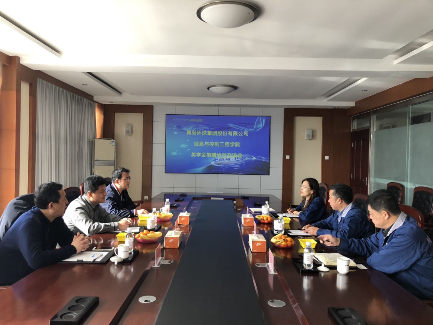 11月21日上午,信息与控制工程学院党总支书记董典同、副书记曲良波,副院长赵景波一行到青岛环球集团股份有限公司进行校企合作洽谈。集团副总经理尹郁武、挂职干部刘志俊副局长、集团办公室主任柴立参加了本次洽谈会。
