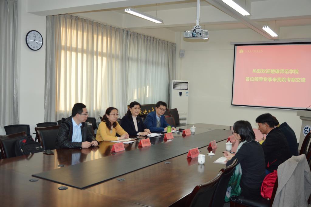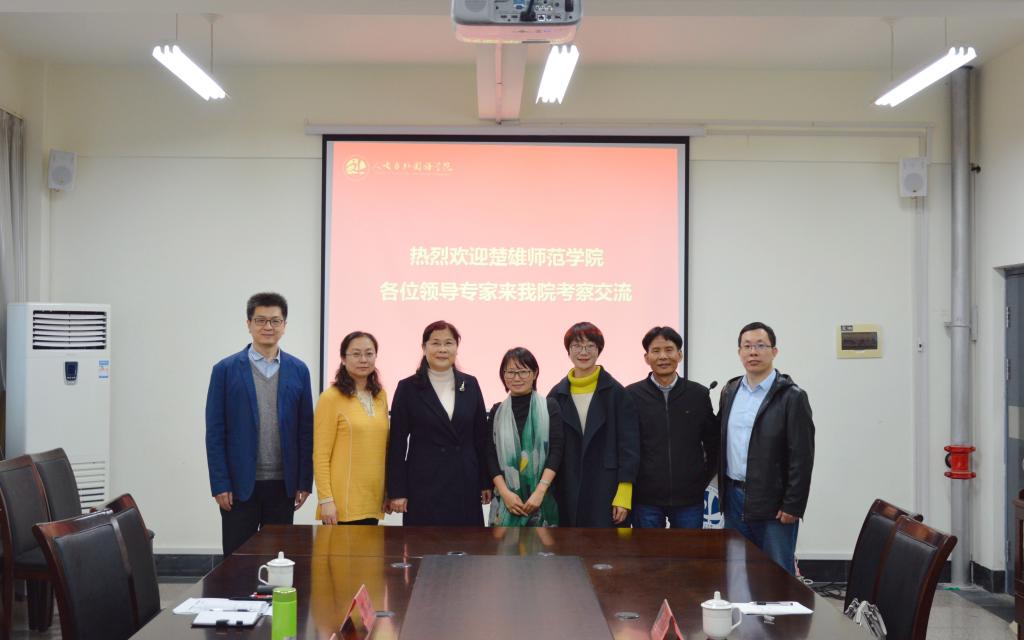 11月22日下午,楚雄师范学院政治与公共管理学院科研办主任左明贵、社会工作系副主任杨海萍、政治系副主任杨海燕到人文与外国语学院考察交流,学院党总支书记王新、院长巩湘红、副院长郭印、院长助理杨书胜陪同会见。