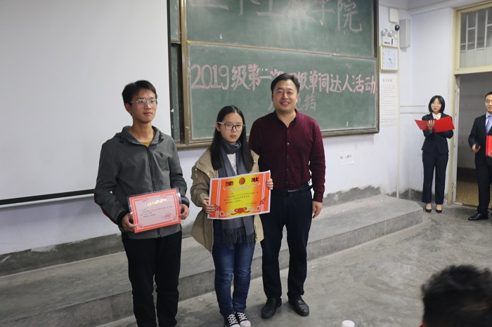 11月20日下午,土木工程学院英语单词达人月考总结大会在1教506阶举行。此次月考总结大会,是对11月9日月考中取得优异成绩的同学进行表彰。学院党总支副书记邵先锋,学生工作办公室主任、分团委书记王中帅,辅导员徐杨杨及各班学习委员参加总结会。