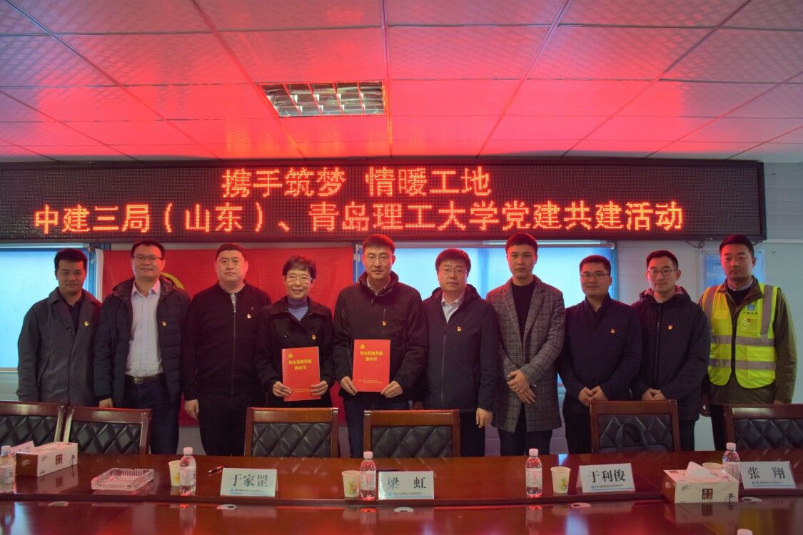 11月26日下午,在第33个国际志愿者日来临之际,管理工程学院师生一行8人在党总支书记梁虹、副书记于利俊的带领下,来到中建三局总承包公司山东分公司中船重工项目部,开展“携手筑梦、情暖工地”党建共建活动,校企双方交流了各自在党建方面的先进作法,签订了支部党建共建协议书,并向码头工人捐献了衣物。