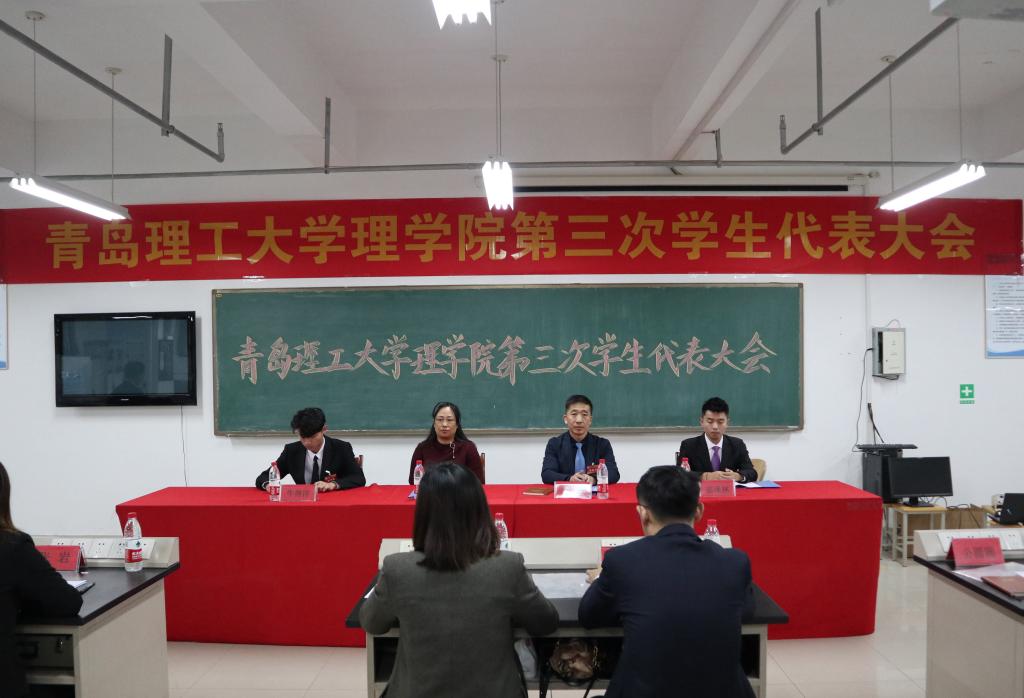 11月24日下午,理学院第三次学生代表大会在嘉陵江路校区顺利召开。党总支书记邹传波、副书记刘聘、全体学生工作干部、校学生会代表苗泽林、嘉陵江路校区兄弟学院学生会代表以及学院60名学生代表共同参加了本次代表大会。会议由分团委书记李晓辉主持。