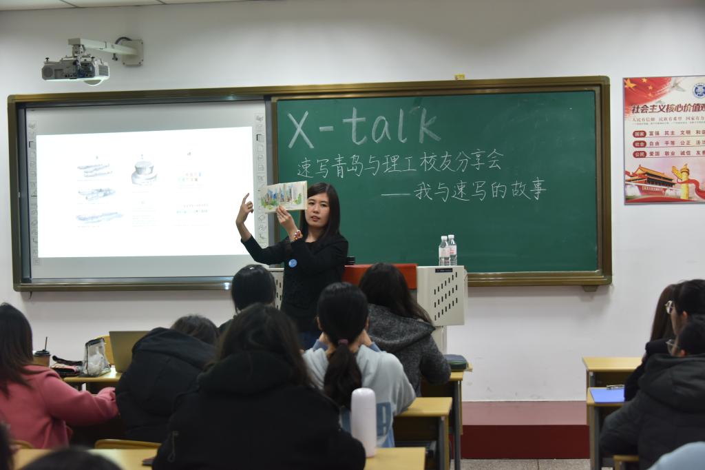 为了让学生更好的认识速写学习速写了解速写的历史和影响,提高学生的速写水平,11月27日晚,建筑与城乡规划学院于建筑馆314开展了“X-Talk”系列讲座之“速写青岛”·校友分享会—《我与速写的故事》。此次讲座有幸邀请到了学院建筑学专业2011届毕业上张菁校友以及城市速写青岛发起人、人文与外国语学院毕业生高芬校友与同学们进行面对面的研讨与交流。