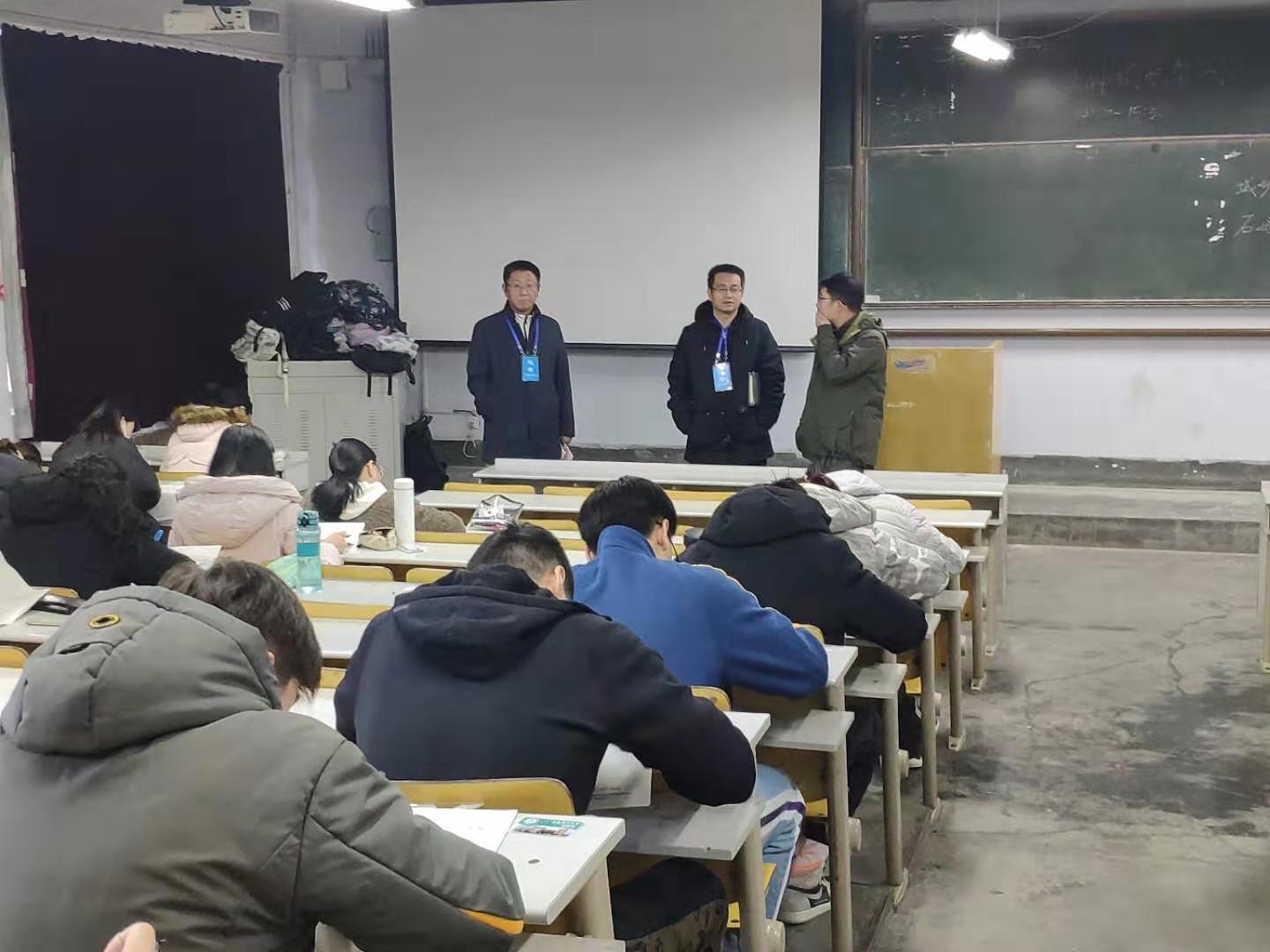 为进一步严肃考风考纪,完善考试的各个环节,确保考试公平公正。11月28日上午,建筑与城乡规划学院全面展开期末巡考工作,党总支书记肖学斌带队,院长许从宝、党总支副书记高江、学生办公室主任王鹏飞、教学办公室主任刘菲菲一行前往学校1号教学楼对考试现场进行巡考。