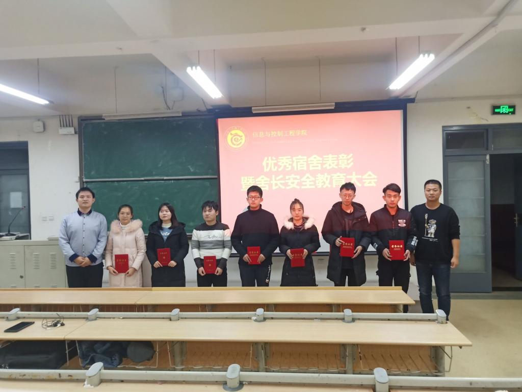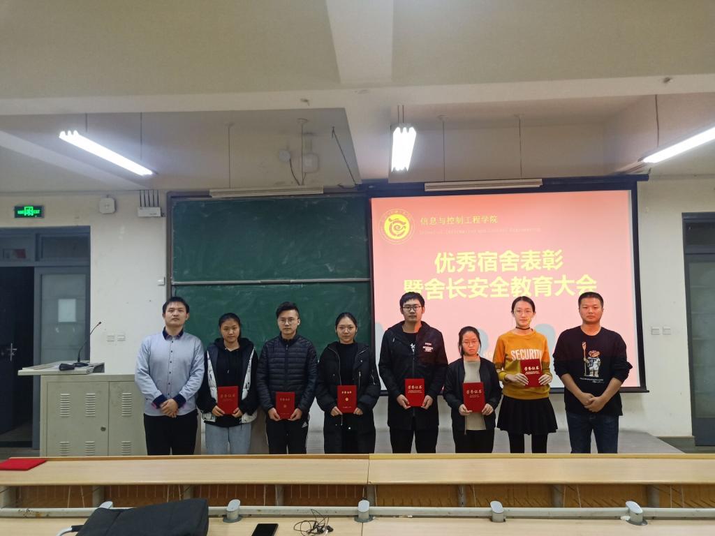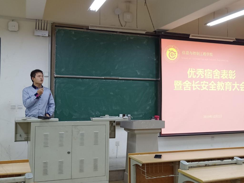 为落实学校近期学生教育管理工作要求,发挥先优典型示范引领作用,提高学生的安全防范意识。12月2日晚,信息与控制工程学院在嘉陵江路校区主教学楼B230召开优秀宿舍表彰暨舍长安全教育大会。辅导员王超、刘荣稳,学院全体宿舍舍长参会。大会由王超主持。