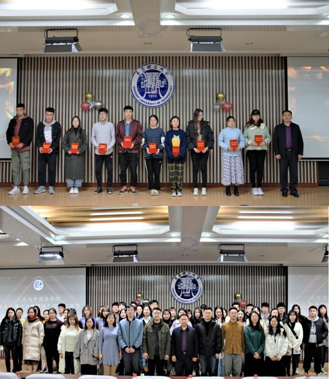 为丰富校园文化生活,营造良好、和谐的宿舍环境,打造学院特色文暖寓语公寓,11月11日至12月3日,人文与外国语学院开展了第十三届“文暖寓语”宿舍文化节,“文暖寓语”宿舍文化节闭幕式于12月3日晚在主教学楼东报告厅举行,学生处副处长申维东,人文与外国语学院党总支副书记王振,分团委书记兼学工办主任马松,辅导员陈刚、贾舒文、王才升,陈彦洁,约有200名学生参加。活动由辅导员贾舒文主持。