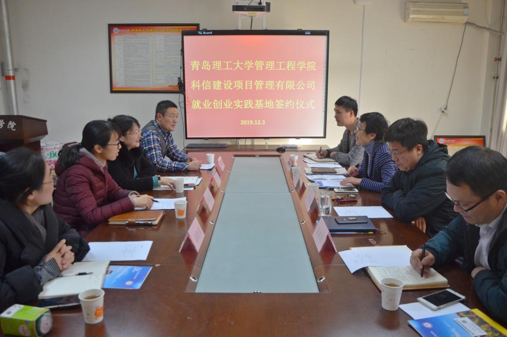 为充分发挥社会资源在推进大学生就业创业教育中的重要作用,拓宽学院学生的就业途径,12月3日下午,管理工程学院与科信建设项目管理有限公司于主教学楼A212会议室举办就业创业实践基地签约仪式。学院党总支书记梁虹,副书记于利俊,分团委书记、学工办主任陈永亮,就业工作辅导员张翔,科信建设项目管理有限公司青岛分公司总负责人李亚贤,副总经理范强、施剑茹,人力资源部经理高胜男参加仪式。会议由于利俊主持。