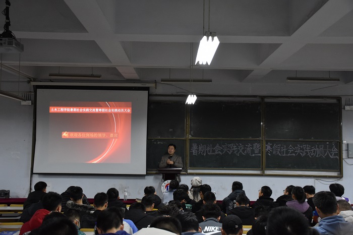 12月6日下午,土木工程学院暑期社会实践交流暨寒假社会实践动员大会于一教200阶举行。学院党总支副书记邵先锋,辅导员马蓉蓉、徐杨杨及2019级各班新生代表参会。