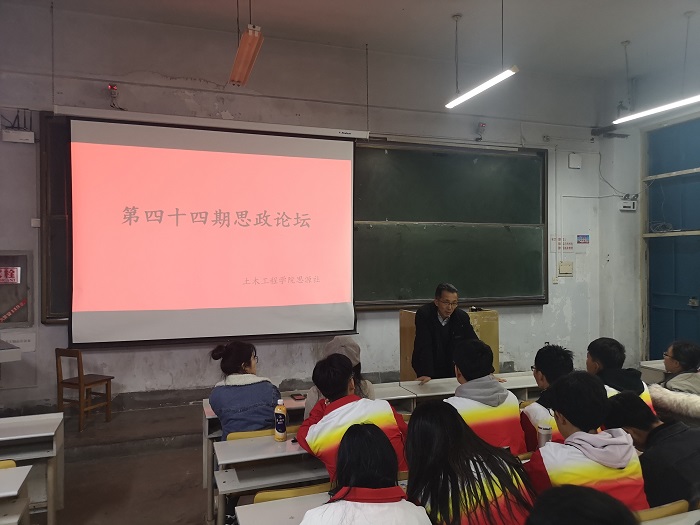 12月11日,土木工程学院第四十四期思政论坛于一教102阶召开。此次论坛由思源社主办,思源社会长孙昊天主讲,围绕香港问题展开。马克思主义学院院长、思源社业务指导教师陈国庆,辅导员徐杨杨、马蓉蓉,学院思源社全体成员及部分入党积极分子参与本次论坛。