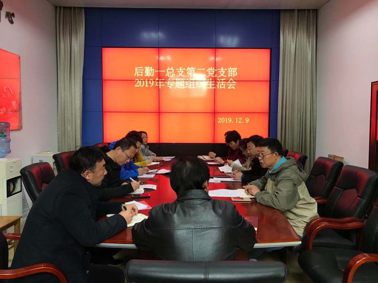 12月9日上午,后勤一总支第二党支部全体党员在2号教学楼节能平台监控室召开了2019年支部专题组织生活会,支部书记姜法显主持会议,二支部全体党员参加会议,后勤一总支总支委员白林同志参会督导。